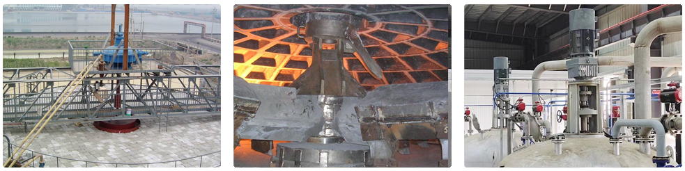 湿法冶炼是利用浸出剂将矿石、精矿、焙砂及其他物料中有价金属组分或待提取组分溶解在溶液中或以新的固相析出。在湿法冶金过程中,通过搅拌设备使固 - 液、液 - 液体系充分混合,以加速化学反应、促进传质传热、提高反应效率和金属回收率的重要工艺环节。因为矿浆固体颗粒和工艺过程化学药剂的加入所有搅拌设备需要具有耐腐蚀和耐磨损的功能,同时浸出过程需要固液气三相溶氧混合和防止沉淀,因此我公司研发了针对浸出过程中研发专用搅拌设备。